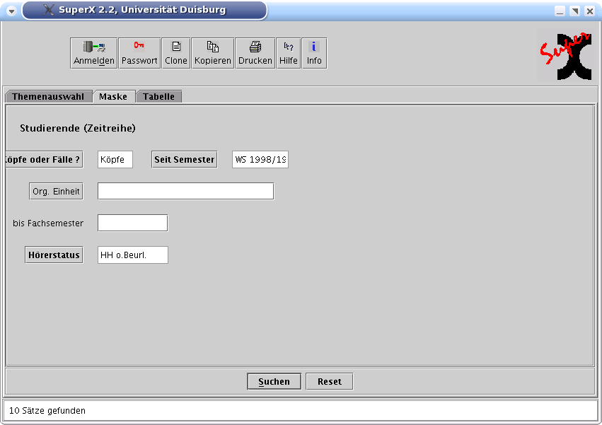 2 Das ist grob verkürzt dargestellt, aber im Augenblick für Abfragen im Bereich Studium ausreichend. Die Prozedur ermittelt außerdem noch die Institutionen, zu denen Ein User Leserechte hat. Das versteckte Feld <<UserID>> ist in jeder Maske vorhanden, und die zugehörigen Institutionen (und deren "Kinder") werden aus der Tabelle user_institution und organigramm ermittelt.