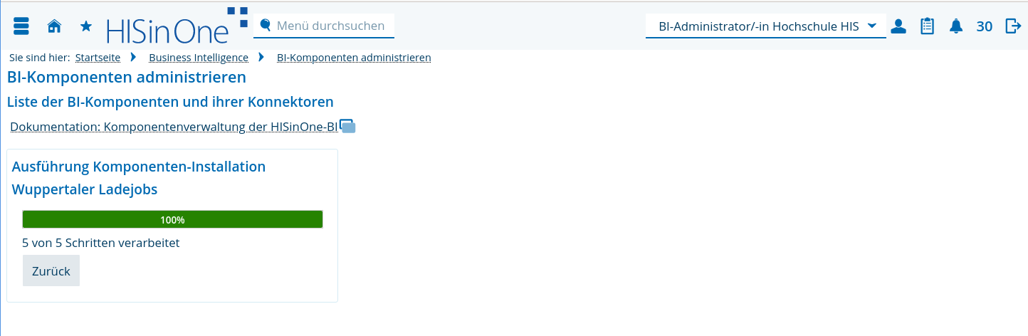 - Danach ist es in der BI-Komponentenverwaltung sichtbar: