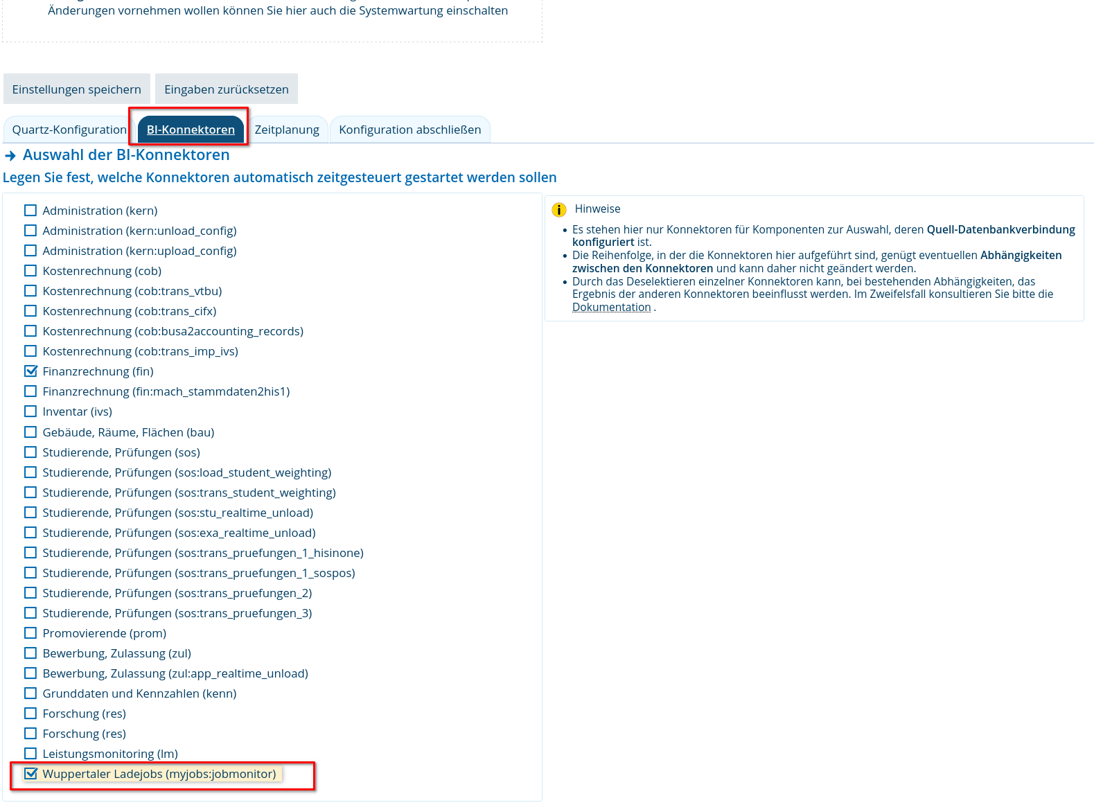 und danach ist es auch in der Konnektorenübersicht sichtbar, inkl. Unter-Ladejobs: