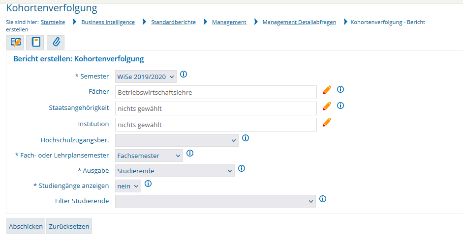 - Absolventen werden gezählt, wenn sie in dem gewählten Semesterzeitraum einen Abschluss gemacht haben.