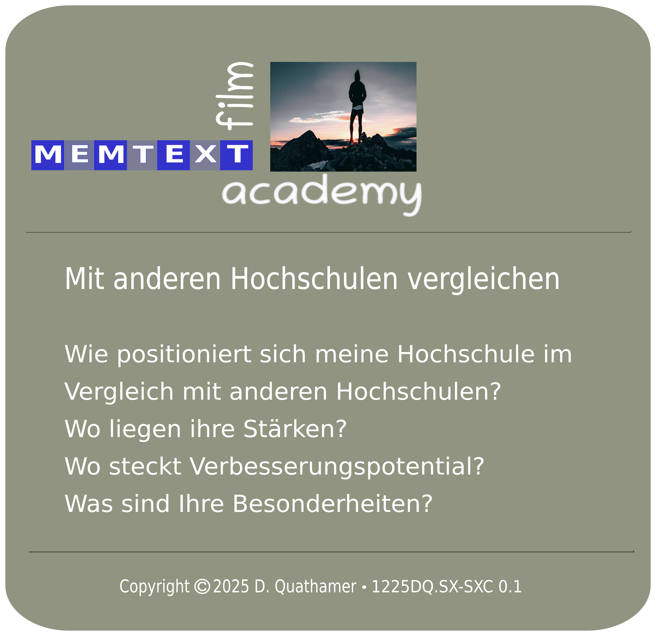 - unterstützt beim freiwilligen Vergleich beliebig vieler Hochschulen, auch aus unterschiedlichen Bundesländern.