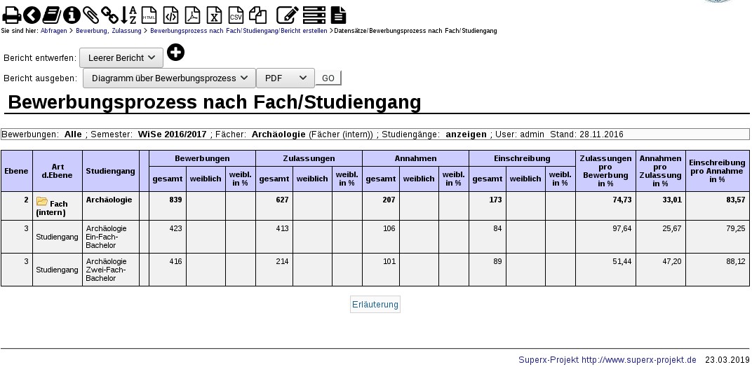 Hier wird nur das Modul COSTAGE genutzt, und die dortigen Datenwürfel werden direkt mit anderen Tools außerhalb von SuperX weiterverarbeitet.