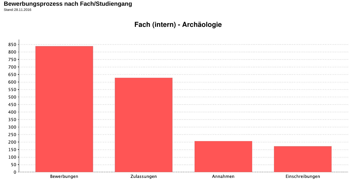 Die Grafik zeigt die Bewerbungen nach Bewerbung, Zulassung, Annahme und Einschreibung.