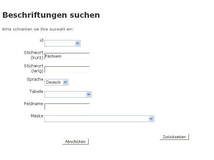 Sie z.B. die Maske "Tabelle suchen", diese ist ein gutes, einfaches Beispiel für eine Kombination aus Suchformular und Bearbeitungsformular.