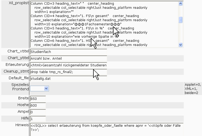 2 Das ist grob verkürzt dargestellt, aber im Augenblick für Abfragen im Bereich Studium ausreichend. Die Prozedur ermittelt außerdem noch die Institutionen, zu denen Ein User Leserechte hat. Das versteckte Feld <<UserID>> ist in jeder Maske vorhanden, und die zugehörigen Institutionen (und deren "Kinder") werden aus der Tabelle user_institution und organigramm ermittelt.