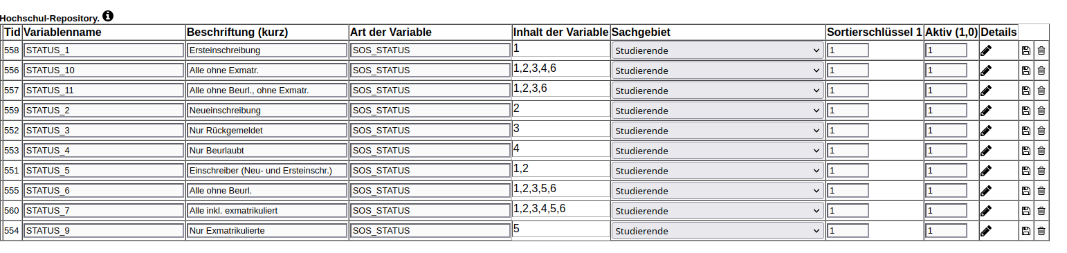 - Maskenfelder Köpfe oder Fälle,Hörerstatus, Status, HZB-Art ins Repository verlagert