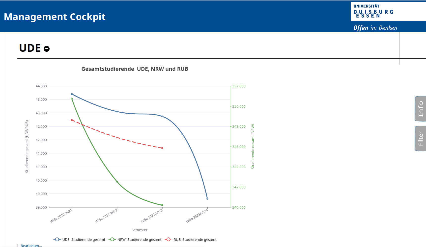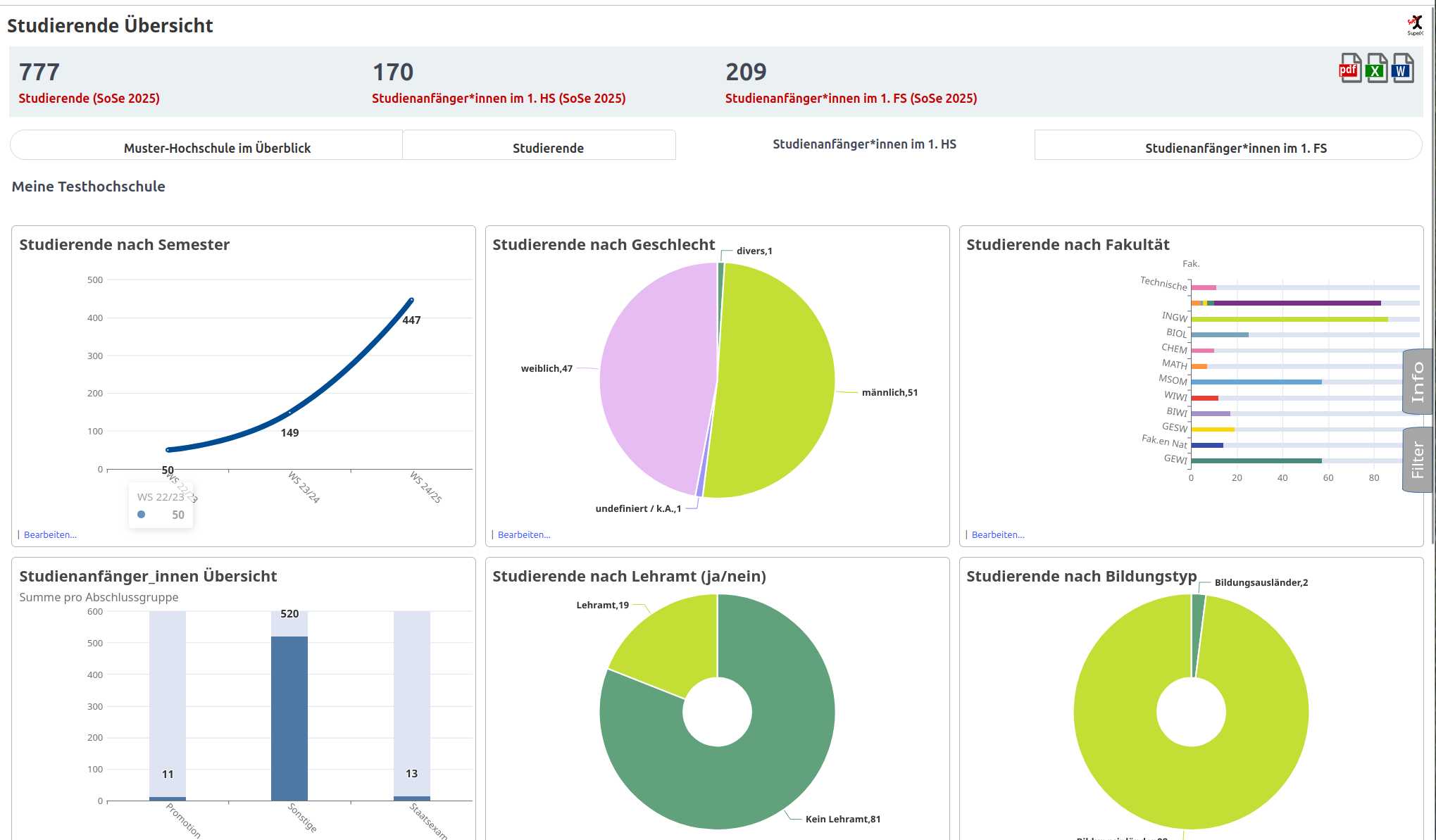 Im VIZ Modul wird ein Beispiel-Dashboard auf der Basis vom Studierenden-Datenblatt mitgeliefert.