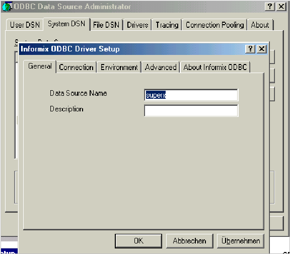 SuperX (Informix) unter Win32 als ODBC-Datenquelle einrichten |