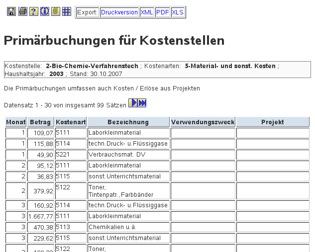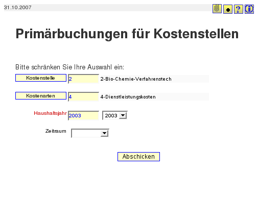 Nehmen wir z.B. eine Maske im Bereich Kostenrechnung: