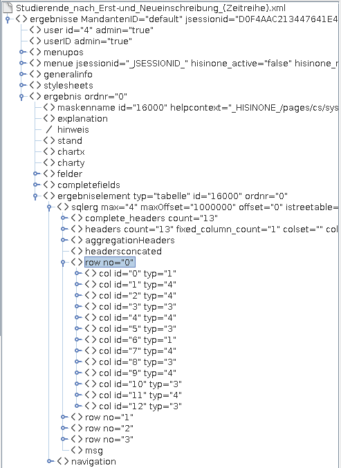 Hierbei handelt es sich um die XML der Ergebnistabelle des Berichtes "Studierende nach Erst- und Neueinschreibung (Zeitreihe)":