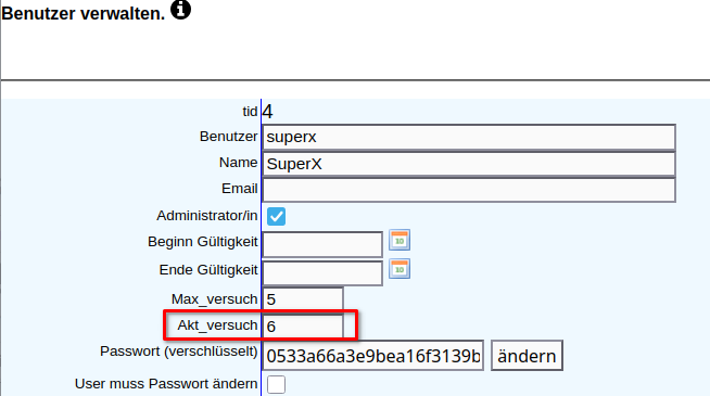 Setzen Sie das Feld "Akt_versuch" auf einen Werte kleiner als "Max_versuch".