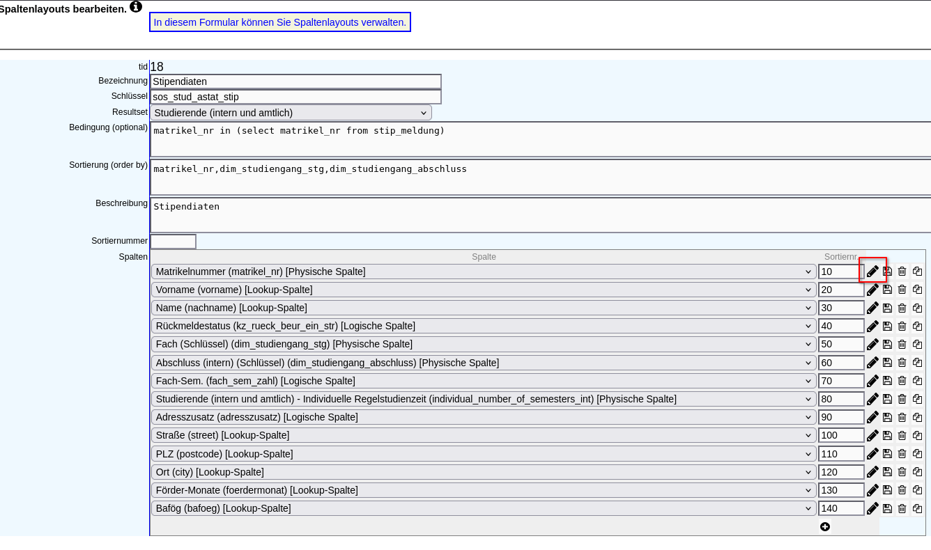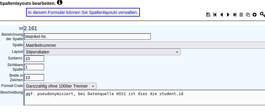 - Über die Felder Spalte und Layout erfolgt die Zuordnung einer Spalte zum Spaltenlayout