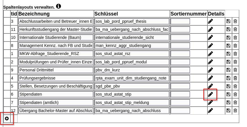 - Mit Klick auf den Detail-Button öffnet sich folgendes Formular (alternativ mit Klick auf + neues Spaltenlayout anlegen)